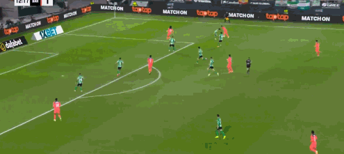 第77分钟,亚马尔传球,费兰抢点稍慢一步